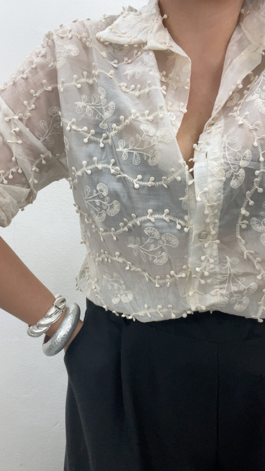 Camicia panna con ricamo