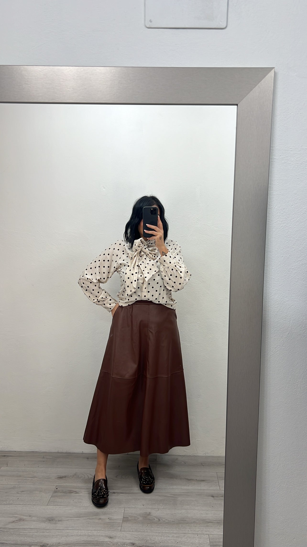 Camicia con fiocco a pois marrone.Taglia unica veste 40/44