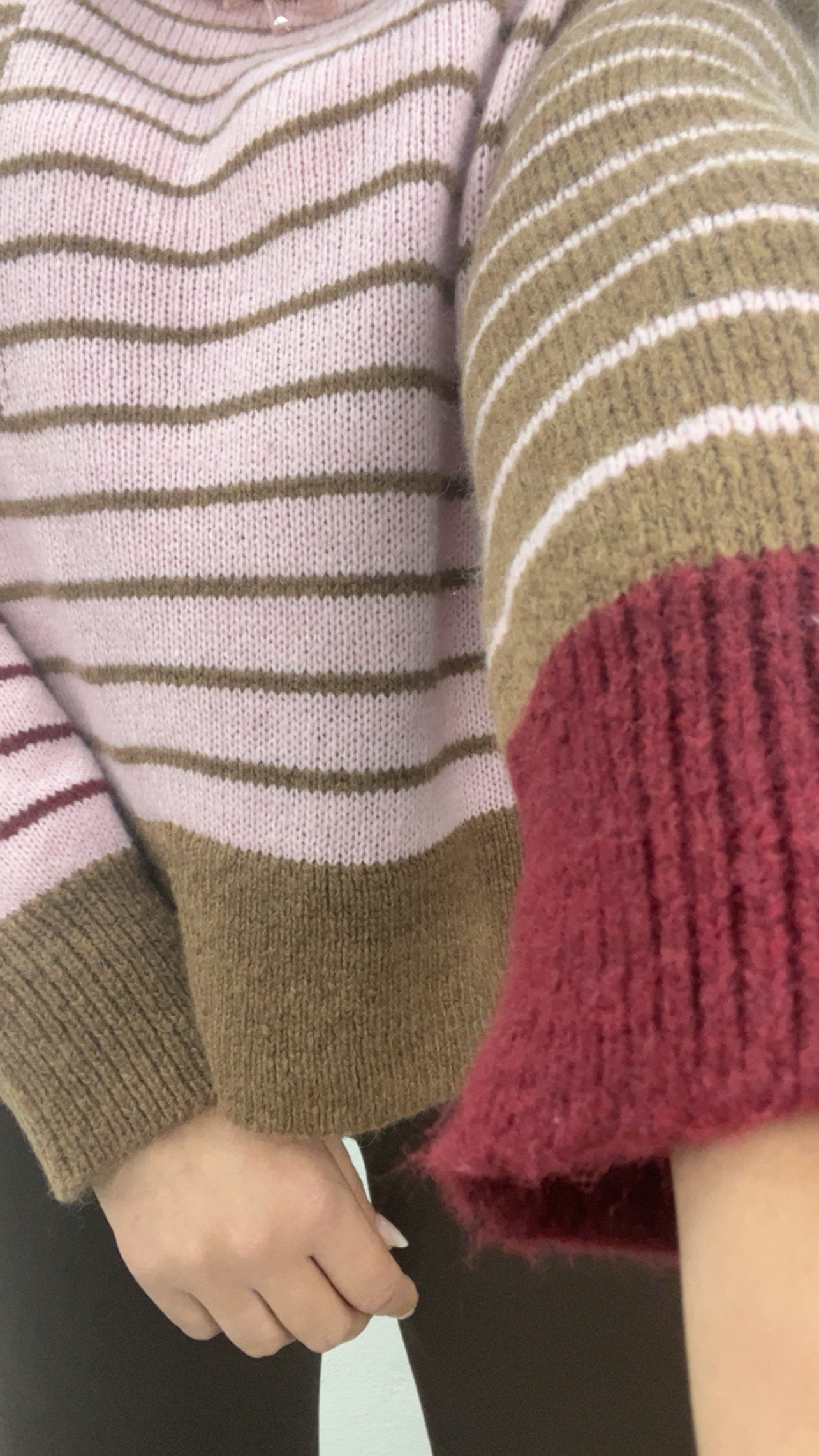 Maglia morbida con righe.Taglia unica veste 40/44. 7% viscosa 7% lana 86% poliestere