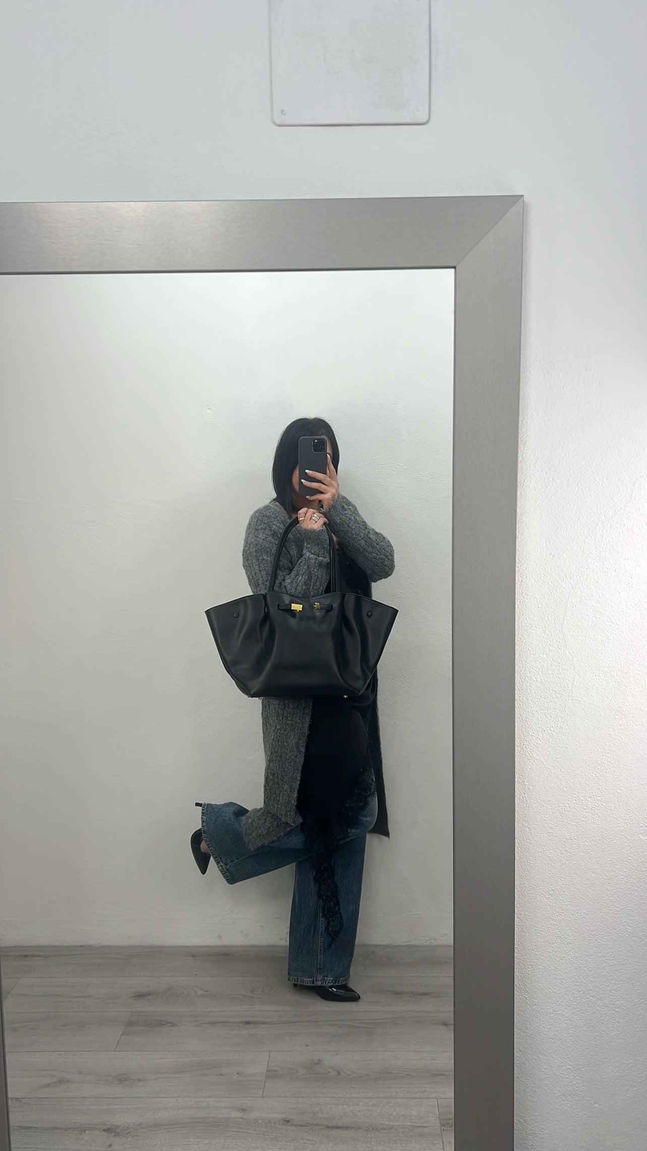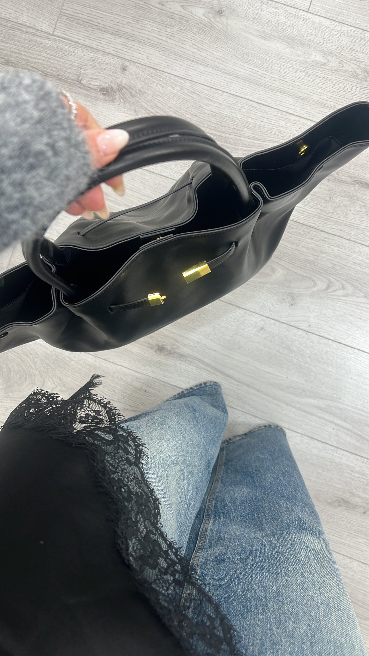 Jeans palazzo con agganciatura trasversale