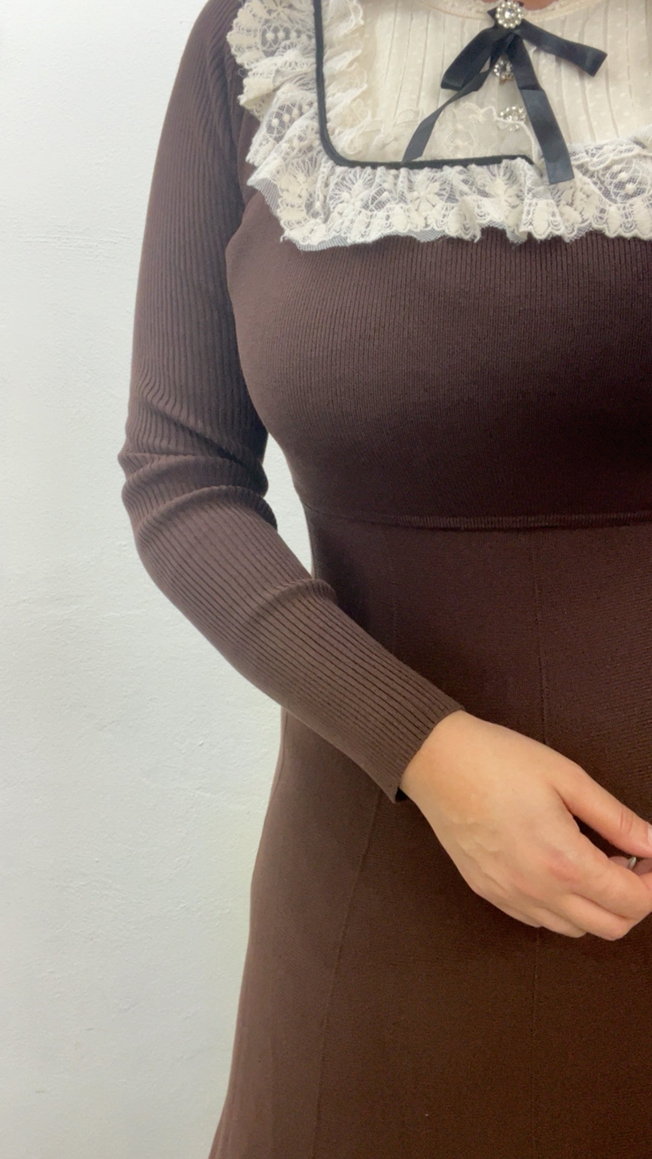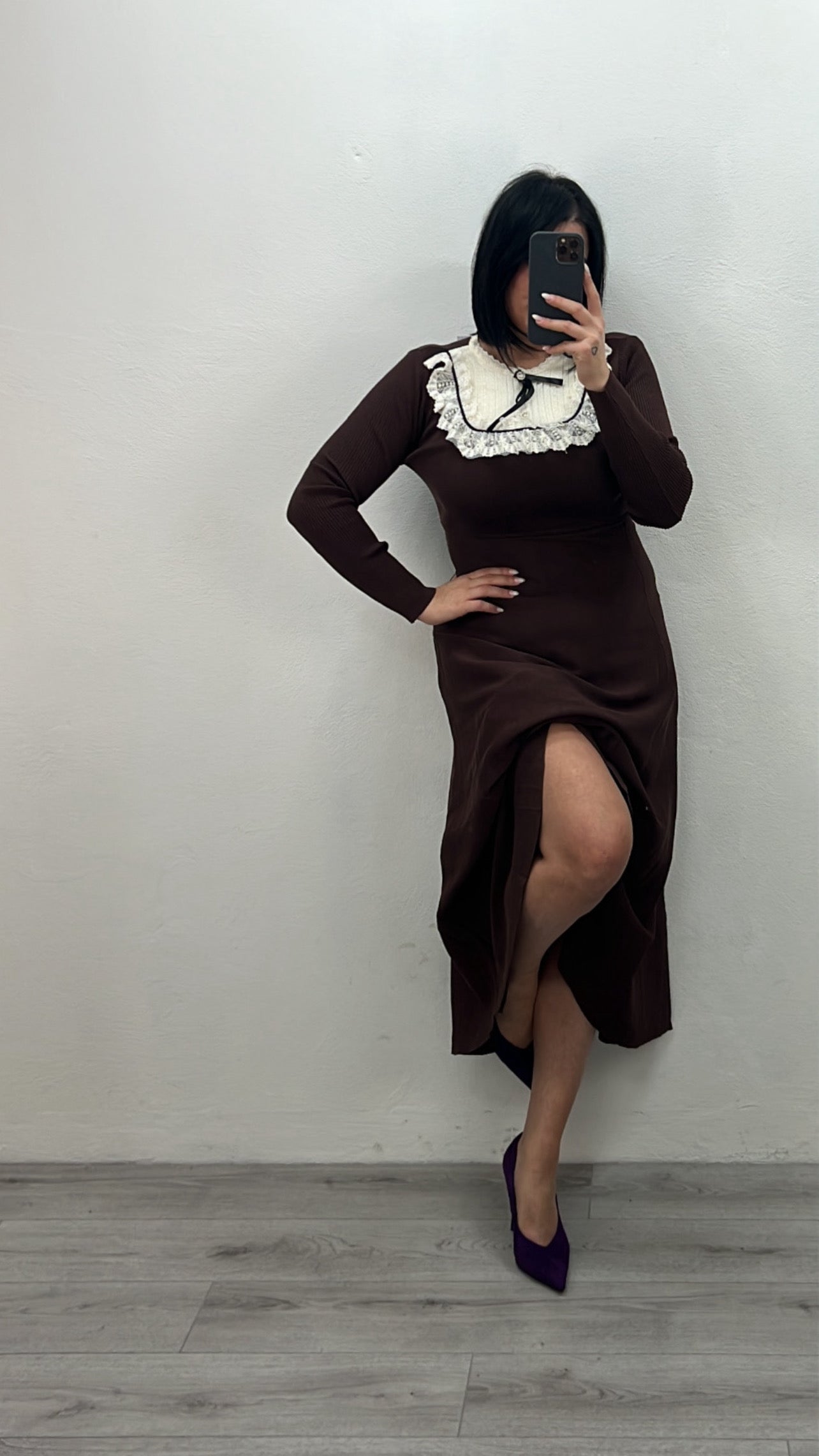 Abito lungo,elasticizzato con colletto panna.Taglia unica veste 40/44